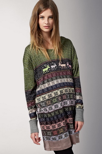Зимова сукня-светр відмінно поєднується з щільними темними колготками або лосинами, а також яскравими аксесуарами: шарфиками, намистом, браслетами і поясами. Забарвлення сукні може бути однотонним, мати мудрий візерунок або цікаву в’язку, геометричний малюнок і т.д.